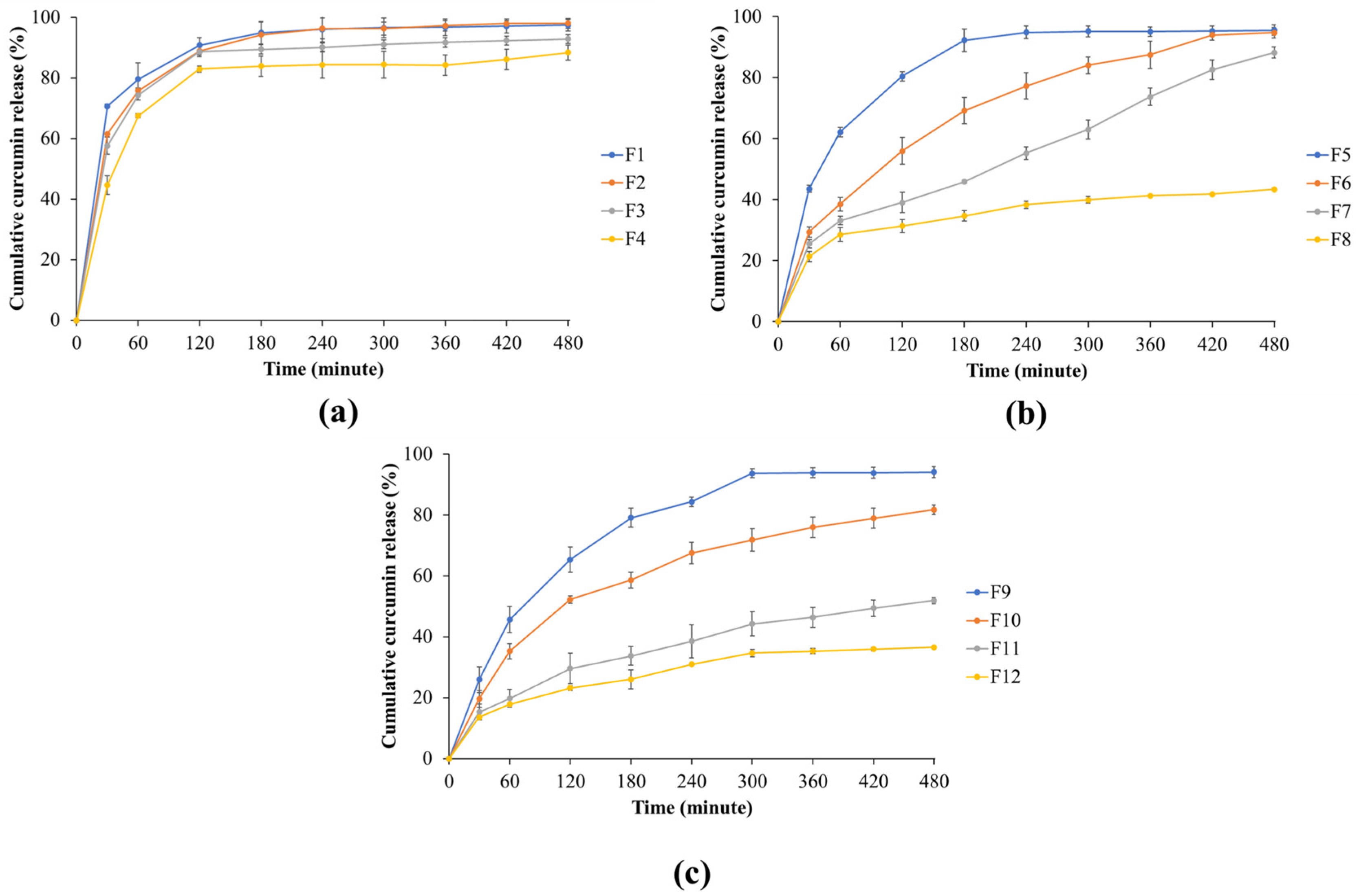 2.4. In Vitro Curcumin Release from Floating In Situ Gels
