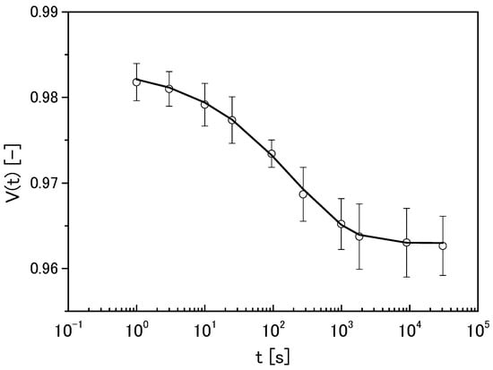 The time profile of the volume change in agarose gel (1.5 wt %) is shown in Figure 2. The solid line in Figure 2 is the result of analysis using Equation (2) (the actual values of the parameters are listed in Table 2 as “control”)