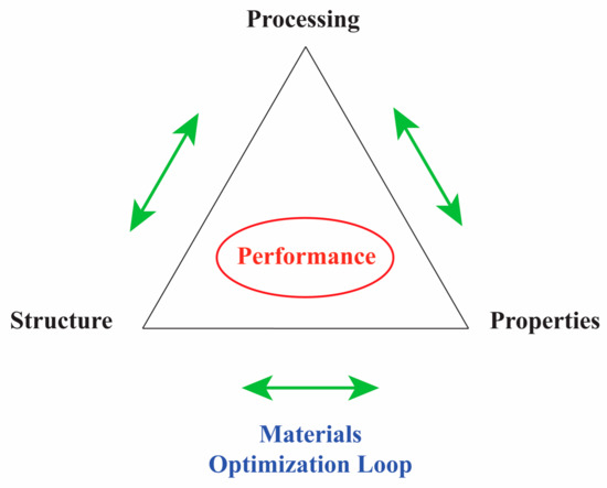 The interdependence of processing, structure, properties, and performance of materials can be described using an optimization loop, as shown in Figure 1 [1,2]. The strategy in developing new materials, then, requires consideration of a multilevel structure, which leads a series of properties, characteristics, or behaviors in a certain environment, necessary to meet desire product performance [3].