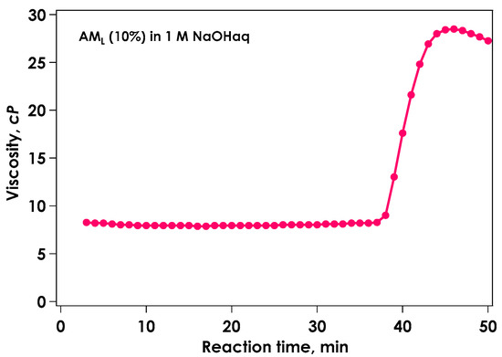 Viscosity behavior at 20 °C during AML gelation by in situ neutralization.