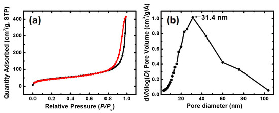 (a) N2-sorption isotherm for spherical PUA aerogel beads; (b) Barrett–Joyner–Halenda (BJH) pore size distribution.