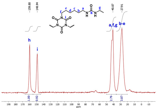 13C cross-polarization magic angle spinning (CPMAS) NMR spectrum of spherical PUA aerogel beads.