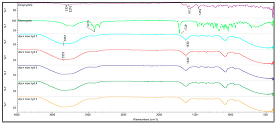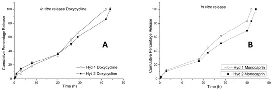2.6. In Vitro Release (Doxycycline and Monocaprin) Release Mechanism