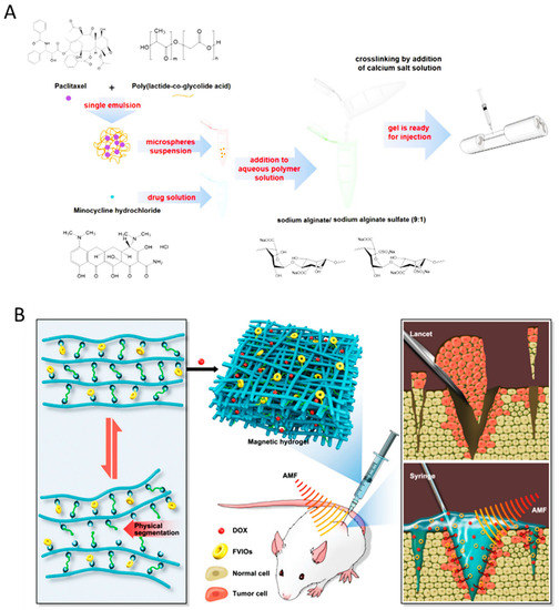 - Wu, D.; Shi, X.; Zhao, F.; Chilengue, S.T.F.; Deng, L.; Dong, A.; Kong, D.; Wang, W.; Zhang, J. An injectable and tumor-specific responsive hydrogel with tissue-adhesive and nanomedicine-releasing abilities for precise locoregional chemotherapy. Acta Biomater. 2019, 96, 123–136. [Google Scholar] [CrossRef]