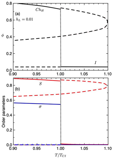 where . Substituting Equation (41) into Equation (28), the orientational order parameter can be determined by