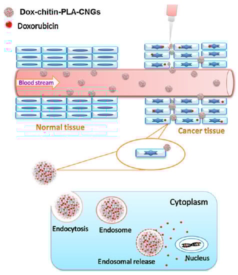Schematic hypothetical mechanism of doxorubicin (DOX) delivery from chitin nanogels within the cell. Reprinted with permission from Elsevier [69].