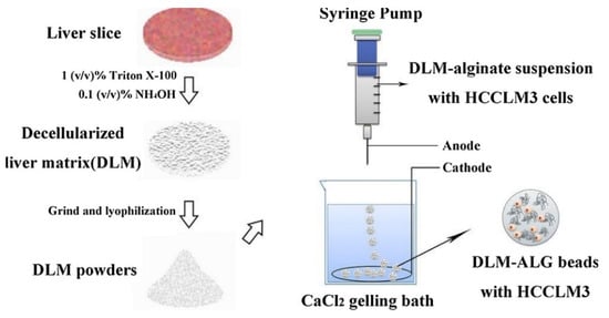 - Sun, D.; Liu, Y.; Wang, H.; Deng, F.; Zhang, Y.; Zhao, S.; Ma, X.; Wu, H.; Sun, G. Novel Decellularized Liver Matrix-Alginate Hybrid Gel Beads for the 3D Culture of Hepatocellular Carcinoma Cells. Int. J. Biol. Macromol. 2018, 109, 1154–1163. [Google Scholar] [CrossRef]