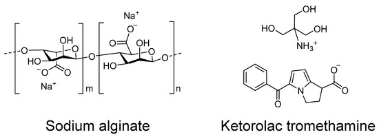 Figure 1. Chemical structures of sodium alginate polymer and ketorolac tromethamine.