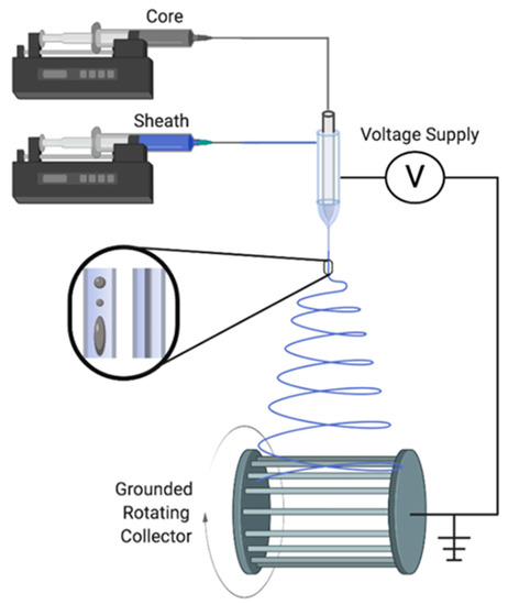 Schematic of the coaxial electrospinning setup.