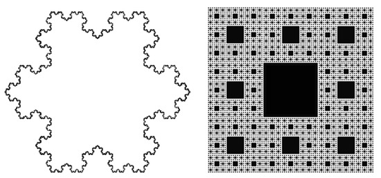 - von Koch, H. Sur une courbe continue sans tangente, obtenue par une construction géométrique élémentaire. Ark. Mat. Astron. Fys. 1904, 1, 681–702. [Google Scholar]