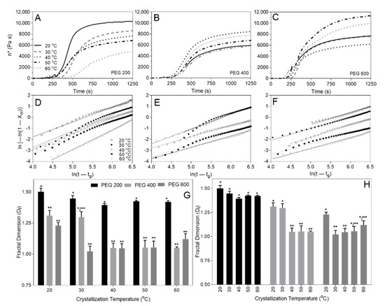 - Liu, X.Y.; Sawant, P.D. Formation kinetics of fractal nanofiber networks in organogels. Appl. Phys. Lett. 2001, 19, 3518–3520. [Google Scholar] [CrossRef]