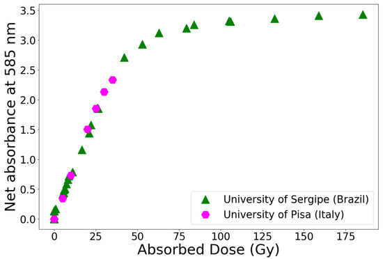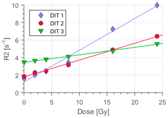 - Gambarini, G.; Arrigoni, S.; Cantone, M.; Molho, N.; Facchielli, L.; Sichirollo, A. Dose-response curve slope improvement and result reproducibility of ferrous-sulphate-doped gels analysed by NMR imaging. Phys. Med. Biol. 1994, 39, 703. [Google Scholar] [CrossRef] [PubMed]