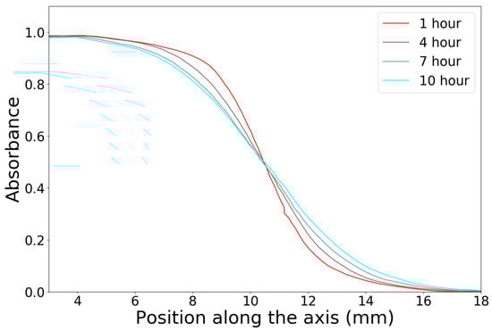 - Marrale, M.; Collura, G.; Gallo, S.; Nici, S.; Tranchina, L.; Abbate, B.F.; Marineo, S.; Caracappa, S.; d’Errico, F. Analysis of spatial diffusion of ferric ions in PVA-GTA gel dosimeters through magnetic resonance imaging. Nucl. Instrum. Methods Phys. Res. Sect. B Beam Interact. Mater. Atoms 2017, 396, 50–55. [Google Scholar] [CrossRef]