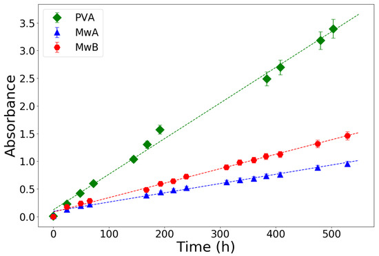 | PVA-GTA (Mw-B) | 0.077 ± 0.001 (1s.e.) | 0.152 ± 0.008 (1s.d.) | 2.60 × 10−4 |