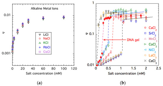 - Horkay, F.; Basser, P.J. Osmotic Observations on Chemically Cross-Linked DNA Gels in Physiological Salt Solutions. Biomacromolecules 2004, 5, 232–237. [Google Scholar] [CrossRef] [PubMed]