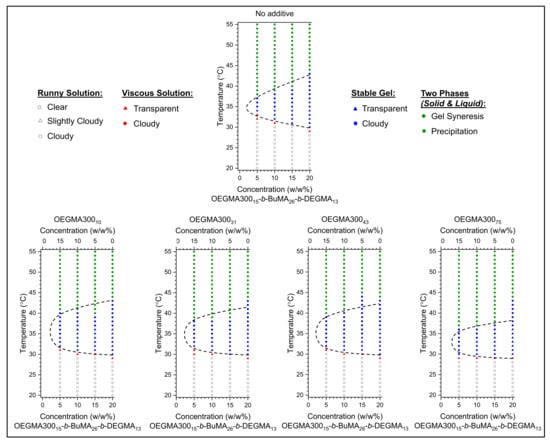 2.1. Homopolymers as Additives in Thermogelling Triblock Copolymer Solutions—Visual Phase Transitions