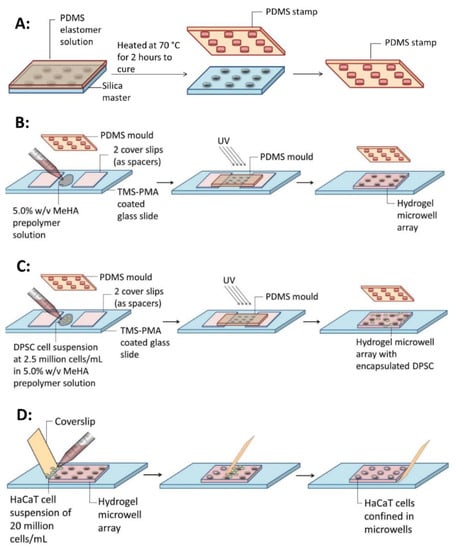 2.4. DPSC Encapsulation within MeHA Hydrogel Microwell Array