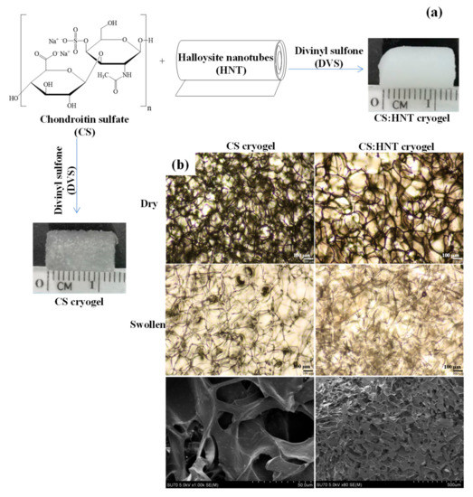 CS:HNT cryogels were synthesized in a similar way as mentioned above, but 0.04 g HNT was added into the cryogel precursor solutions.