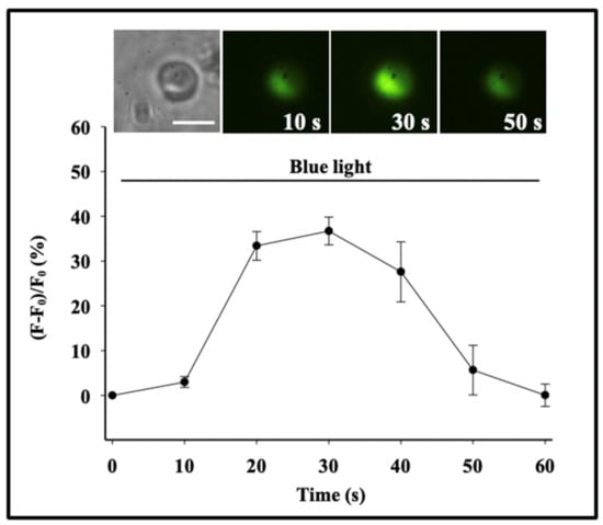 Phaeocystis to blue light stimulation (λ = 450–490 nm) results in a transient increase of intracellular [Ca