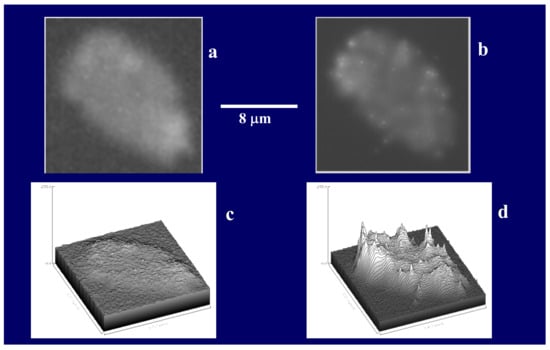 b) shows a 300 nm thin gel section where bacteria can be readily observed. The corresponding 3D plots of contrast ratios of BacLigh-Red