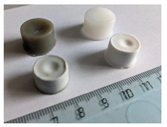 For calculation of bulk density, the dimensions of the cylindrical form and mass values were used. The porosity (P, %) value was estimated from the bulk () and skeletal density () according to equation: