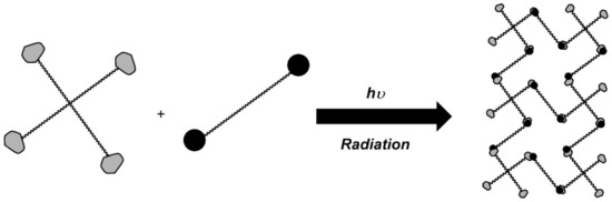 UV radiation-induced polymerization is also frequently used to prepare hydrogels [92,93,94,95]. With this type of polymerization, they can be formed in situ [96], molded structures and even photoreversible systems can be prepared that photodegrade on exposure to UV light such that the release of drugs is controlled [97].