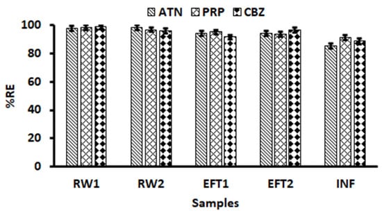 2.7.1. Occurrence of Atenolol, Propranolol, and Carbamazepine in Water Samples
