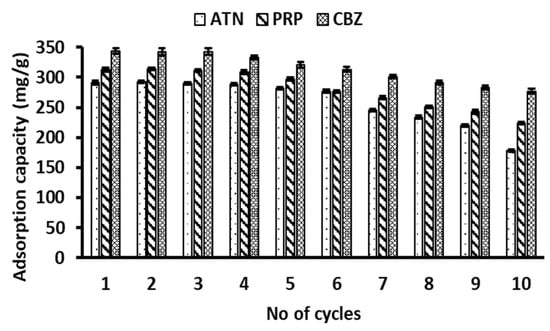 | Carbamazepine and Propranolol | Activated carbon fiber | (0.300 ± 0.014, 0.277 ± 0.021 | [56] |