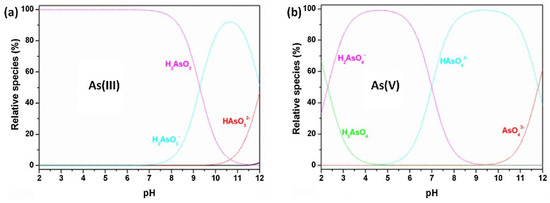 (a) As(III) and (b) As(V) speciation as a function of the solution pH [24].