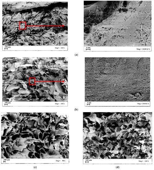 In Figure 5, SEM images of the section of agarose aerogels are reported.