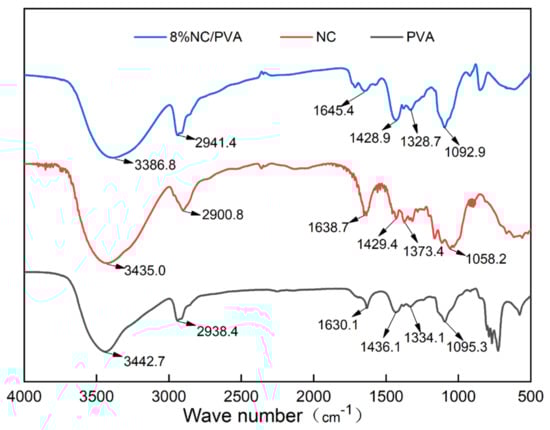 2.2. The Structure and Hydrogen Bond Fitting of PVA/NC Nanofiber Membranes