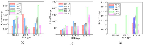 The value of the Cs-137 distribution coefficient (mL/g) was calculated using Equation (2):