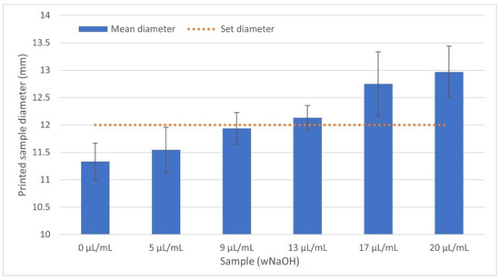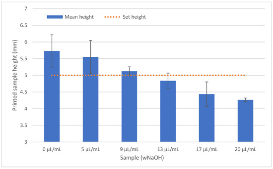 There was a difference in the final diameter of the printed cylinders depending on the concentrations of NaOH. The bars represent the mean value with SD; N = 4.