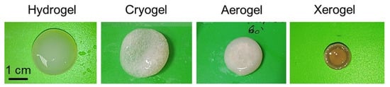 Practical samples of a pectin hydrogel, cryogel, aerogel and xerogel. Reprinted with permission from [].