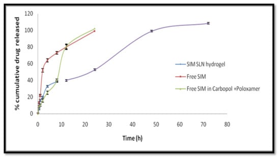 w), which was challenging in light of the fact that it is poorly soluble and the choice of surfactants for developing SIM-SLN was limited due to its proneness to degrade in aqueous surfactant solutions viz. tweens. SIM-SLN hydrogel was prepared using hot high-pressure homogenization method. The achieved loading was 5–10 times more than those reported [