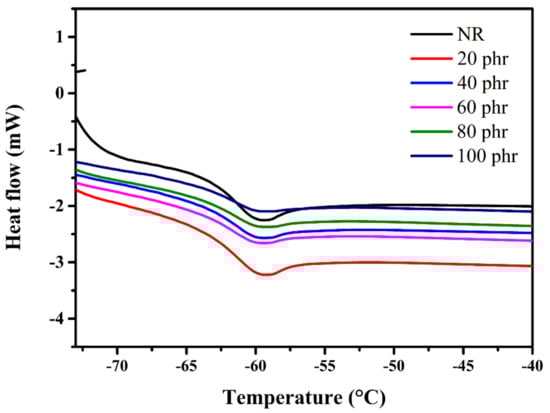 - Loadman, M.J.R. The glass transition temperature of natural rubber. J. Thermal Anal. 1985, 30, 929–941. [Google Scholar] [CrossRef]