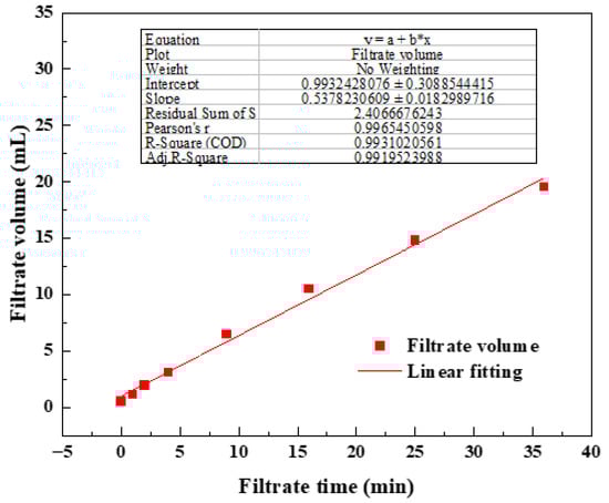 where is the flow rate of the filtrate (cm3·s−1); is the volume of the filtrate (cm3); and is the time of the filtrate (min).