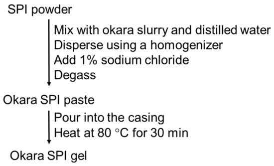 Schematic diagram of the preparation procedure for okara-soybean protein isolate (SPI) gels.