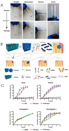 - Liu, S.; Wang, Y.N.; Ma, B.; Shao, J.; Liu, H.; Ge, S. Gingipain-Responsive Thermosensitive Hydrogel Loaded with SDF-1 Facilitates In Situ Periodontal Tissue Regeneration. ACS Appl. Mater. Interfaces 2021, 13, 36880–36893. [Google Scholar] [CrossRef]