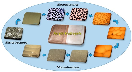 - Bautista, F.; Garcia, S.; Jimenez, R.; Lopez, L.; Orozco, E.; Prado, M.; Reyes, I. Influence of the Synthesis Thermal History on the Structure of Acrylate Based Hydrogels; ANTEC-CONFERENCE PROCEEDINGS: Boston, MA, USA, 2005; Volume 5, p. 373. [Google Scholar]