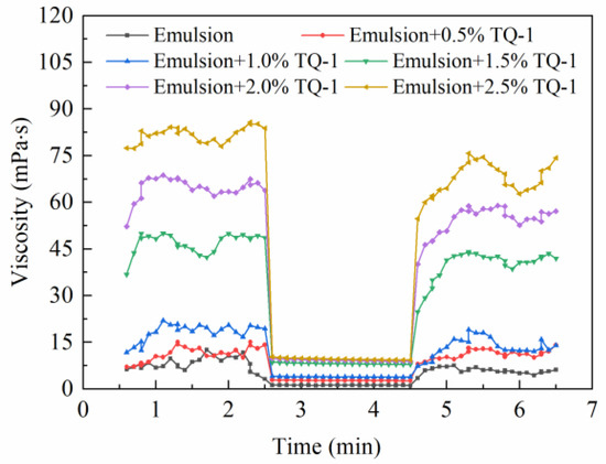 2.4.1. The Effect of TQ-1 on the Viscosity of the Emulsion