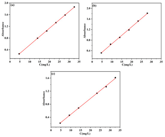 The concentration of 5-Fu in the solution was precisely measured using S 3100 UV–Vis spectra (Mapada Instruments Co. Ltd., Shanghai, China) at 265 nm [27,28]. The determination of drug loading and encapsulation efficiency (pH = 1.0, HCl aqueous solution) and the release rate of 5-Fu (pH = 5.0 and 7.4, PBS solution) were performed at different pH values; therefore, the calibration plot of 5-Fu toward concentration under different pH values was drawn up. The calibration plots are shown in Figure 10, and the corresponding correlation equation and coefficient (R2) obtained from standard curves are listed in Table 4.