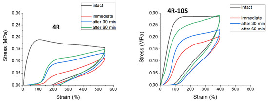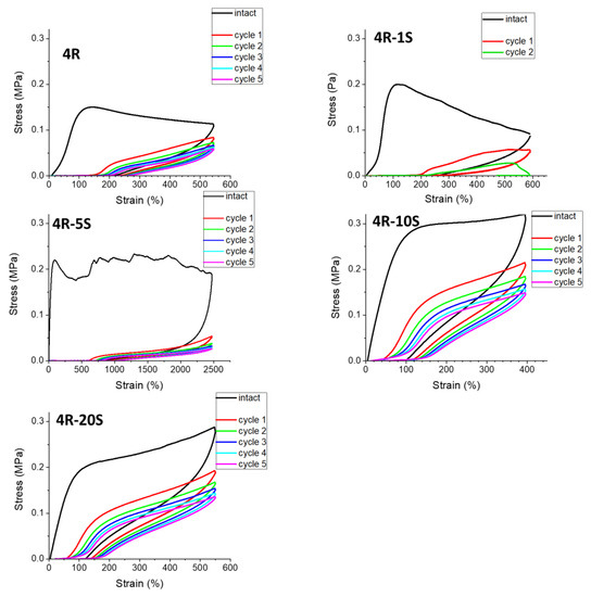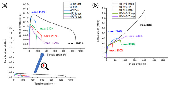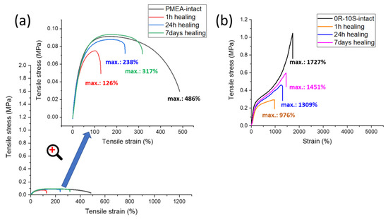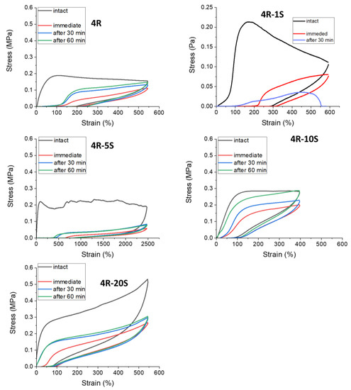 2.7. Internal Self-Healing: Differently Fast Self-Recovery of Mechanical Properties after Large Stretching Deformation
