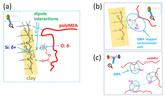 - Generally, in the dry state the SMA co-monomer introduces a tremendous increase in tensile strength, combined with an increase in toughness, while ultra-extensibility similar to the simpler ‘poly[MEA]/clay’ nanocomposites is preserved;
