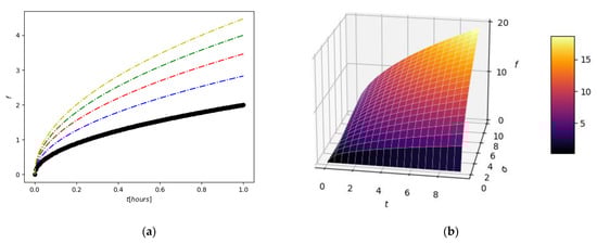 In Figure 1a,b, 3D plot representations of the multifractal function are presented for two distinct sets of variable values ξ and η, utilized for drug-release analysis.