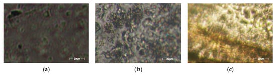 Representative POM images [17] of the formulations (a) U1; (b) U2; (c) U4.