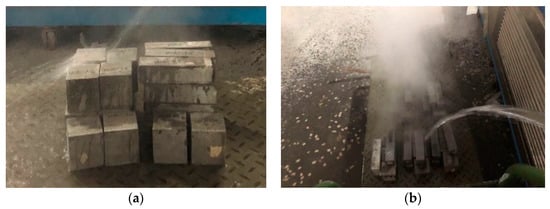 The appearance and mass of the specimens were recorded before and after exposure to elevated temperatures. Subsequently, their mass losses were calculated. The test specimens were cubes with dimensions of 100 × 100 × 100 mm. Three specimens were tested under each working condition and the average value was used as the test result.