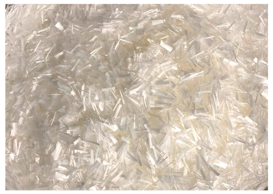 PVA-FRCC specimens were prepared from ordinary Portland cement (OPC) (in accordance with the common Portland cement standard (GB175-2007)) [46], Class I fly ash (FA), quartz sand, PVA fiber, water, and admixture. OPC was P.O 42.5. Table 2 presents the compositions of OPC and FA. The particle size of the quartz sand ranges between 75 μm and 120 μm. Table 3 provides the physical indices of the PVA fibers (Figure 13). A polycarboxylate acid superplasticizer (SP) was used as the admixture.