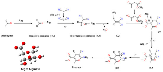 - Dekamin, M.G.; Peyman, S.Z.; Karimi, Z.; Javanshir, S.; Naimi-Jamal, M.R.; Barikani, M. Sodium Alginate: An Efficient Biopolymeric Catalyst for Green Synthesis of 2-Amino-4H-Pyran Derivatives. Int. J. Biol. Macromol. 2016, 87, 172–179. [Google Scholar] [CrossRef]