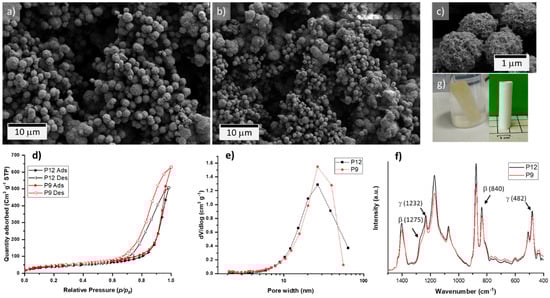 | Sample | SBET (m2 g−1) a | Pore Diameter (nm) b | Pore Volume (cm3 g−1) c | tgel min d | (g cm−3) e | (g cm−3) f | Porosity (%) |